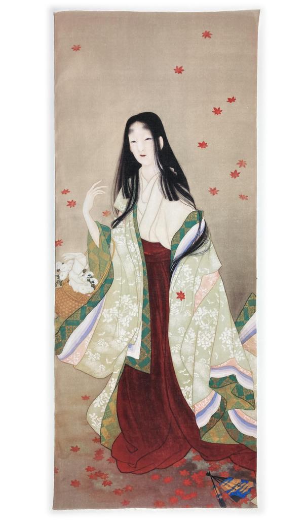 Tenugui (Japanese hand towel) from all times and places, by Uemura Shōen, featuring a floral design.