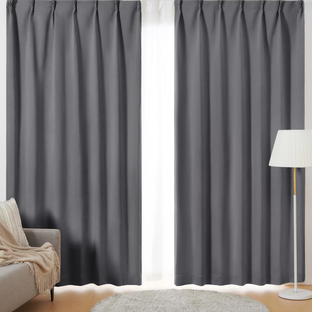 【Product Specifications】■Material: 100% Polyester ■Functions: Grade 1 light blocking, heat insulation, privacy protection, UV cut, shape memory processing, washable ■Set Contents: 2 drape curtains, 2 lace curtains ■Accessories: 2 tassels, adjustable hooks ■1.5x Pleat: Using approximately 1.5 times the finished width of fabric achieves beautiful pleats and high light blocking and heat retention.