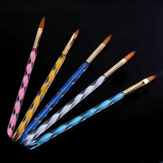 5pcs/set Nail Print Pen Crystal Handle Acrylic Art Nail Brush Kit for For Crystal UV Gel Painting Flower Pens Nails Art Tools