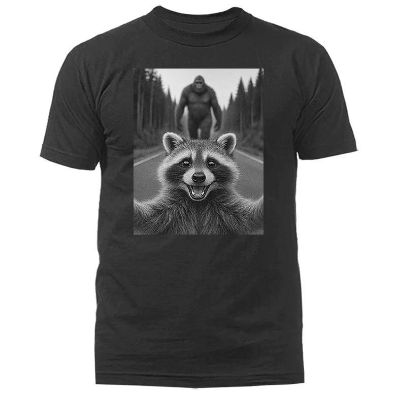 Scared Raccoon Selfie with Sasquatch Bigfoot Humorous T-shirt