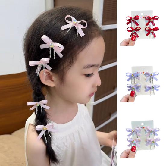 Stylish Design & Versatility: Featuring mini ribbon bows adorned with rhinestones and draping rhinestones chain tassels in fresh macaron colors like soft pink, dreamy purple, and pure white, this hair clip adds a smart, elegant, and noble touch to any hairstyle. Perfect for clipping bangs, side hair, or braided styles with a subtle highlight effect that enhances photo quality.