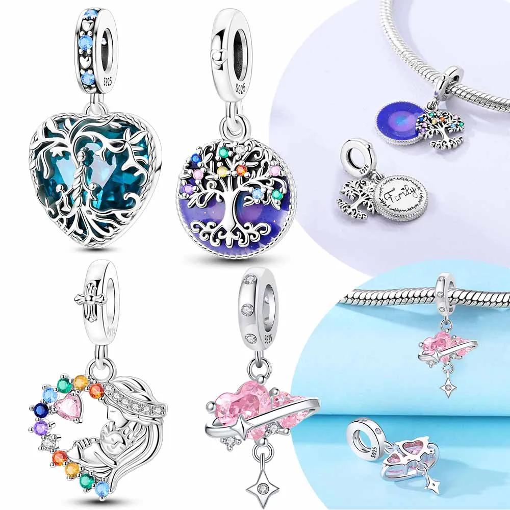 Pink Heart Zircon Hug Mother Son Tree Of Life Beads Fit Original Real Copper Stylish Bracelet Diy Mother'S Day Gift Jewelry Item