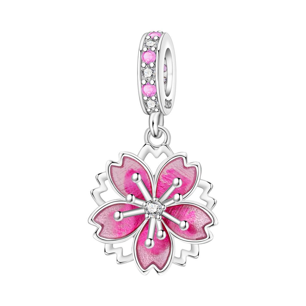 Panpoki Copper Rotating Cherry Blossom Flower Bead Genuine Pendant Bracelets Charms Jewellery Party DoItYourself Trendy Gifts
