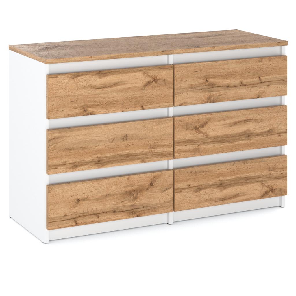 Wotan White Oak Chest of Drawers With Drawers 100 CM TV Cabinet Sideboard Wardrobe Living Room Technical specifications: Furniture system: handleless fronts Furniture type: Standing Width: 100 cm Height: 71.5 cm Depth: 33.5 cm Number of drawers: 6 Board thickness: 16 mm Material: Laminated board Edge: 0.7 mm ABS veneer Color: Wotan White Oak Product weight: 30 kg Type of runners: ball bearing runners - information below in the description Additional functionality: drawer lock Matte body: White Front: Wotan Oak Top : Wotan Oak Front finish: matte Assembly: self-assembly furniture Main features: Classic design that fits perfectly into a variety of interior designs. Practical drawers provide convenient storage of various items. The solid construction guarantees the stability and durability of the furniture for many years. Benefits: Aesthetic appearance: The Wotan White Oak Chest of Drawers adds freshness and elegance to your interior, giving it a modern character. Optimal organization: Thanks to 6 spacious drawers, you can easily keep your interior tidy, without chaos and mess. Multifunctionality: Perfect for the bedroom, living room, and hallway - adapt it to your needs and interior design. Easy to keep clean: The material is easy to clean; a damp cloth is enough to keep the dresser looking new. Ergonomic design: The well-thought-out drawer layout and ergonomic shape ensure comfortable everyday use, eliminating the need to bend over or crouch. Choose a dresser with ball-bearing slides: Ball-bearing slides are a key element that distinguishes modern dressers from traditional solutions. Their use guarantees smooth and quiet drawer operation, improving the comfort of everyday use. Thanks to them, the drawers slide smoothly without jamming, which is especially important for heavy items. IMPORTANT INFORMATION Cleaning: Keeping it clean is easy – just a damp cloth without harsh chemicals. Assembly: Self-assembly furniture with accessories and instructions included. Manufacturer: Quality guarantee: We are a proud manufacturer, which means that each of our products is carefully designed and made with attention to detail and high-quality materials. Supporting the local economy: By choosing our chest of drawers, you support local businesses and contribute to the development of the Polish economy. Safety on the Road: Solid packaging : We make sure that each chest of drawers is carefully packed, ensuring safety on the road, so it reaches you in perfect condition. Chest of Drawers Safety: Solid Construction: Our cabinet has been carefully designed and made of durable materials, which ensures the stability and safety of the most important things stored inside. Secure Closure : The cabinet is equipped with solid guides that ensure the safe storage of your items, protecting them from accidental falling out. Here are some ideas on how to use the 6-drawer chest of drawers in different rooms: In the bedroom: Storing bedding, towels, and other textiles Storing underwear and clothing Using it as a nightstand to keep books, an alarm clock, or a glass of water Placing ornaments, a lamp, or other decorations on it In the living room: Storing various accessories such as remote controls, candles, or newspapers Use as a TV stand where you can place your TV and audio-video equipment Use as a TV stand where you can place books, DVDs or decorations Store decorative items such as frames, vases or figurines In a youth room: Store clothes and underwear Store multimedia equipment and gadgets such as laptops, tablets or smartphones Use as a study or work space where you can keep books and notes Place on it ornaments, posters or other decorations Buying FSC-certified products can bring many benefits, such as: Protecting forests: By purchasing FSC-certified products, you support forests that are managed sustainably and responsibly. Protecting biodiversity: Forests are important habitats for many species of animals and plants. By purchasing FSC-certified products, you can be assured that they are sourced from forests that protect biodiversity. Respecting the rights of local communities : FSC certification requires that forests are managed in a way that respects the rights of local communities. When you buy FSC-certified products, you can be sure that they are harvested from forests that do not violate the rights of local people. Sustainability: FSC certification promotes sustainable development and reduces negative environmental impacts. When you buy FSC-certified products, you can be sure that they are harvested in a way that provides long-term environmental benefits. Reducing the use of chemicals: FSC certification limits the use of chemicals and other harmful substances in forests. When you buy FSC-certified products, you can be sure that they are sourced from forests that are not polluted with chemicals. Support for manufacturers: By purchasing FSC-certified products, you support manufacturers that strive for sustainability and environmental protection. FAQ - Frequently Asked Questions about our 6-Drawer Chest of Drawers: What are the exact dimensions of this chest of drawers? The chest of drawers has dimensions: width 100 cm, height 71.5 cm and depth 33.5 cm - standard requirements for this type of furniture. Is the chest of drawers easy to assemble? Yes, the chest of drawers is designed for easy assembly. The set includes all necessary instructions and assembly hardware. What material is the chest of drawers made of? The chest of drawers is made of high-quality materials, ensuring durability and stability. Is the chest of drawers made in Poland? Yes, the chest of drawers is manufactured in Poland, which guarantees high quality and supports the local economy. Is the chest of drawers stable? Yes, the chest of drawers has been designed for maximum stability, even when the drawers are fully loaded. Is the chest of drawers available in other colors? Information about available color variants can be found in the multi-varian