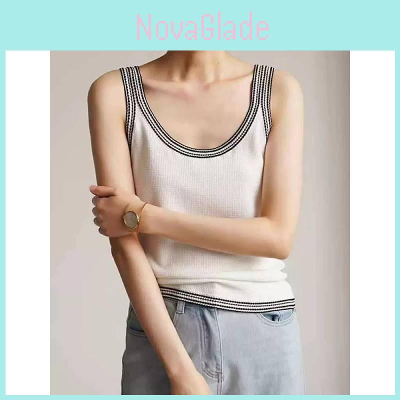 Zomer mouwloos T-shirt voor dames met kleurblokontwerp en polyester stof voor casual gebruik