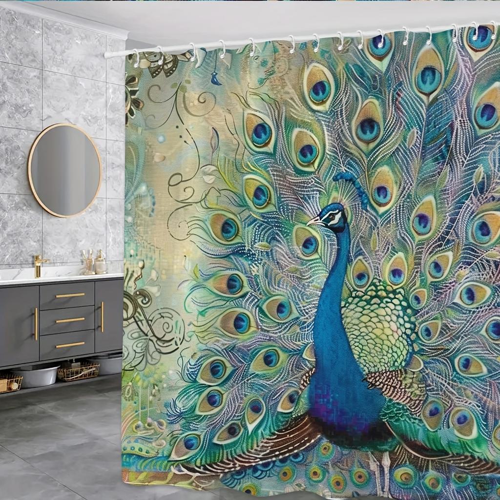 Elegant Peacock Design Waterproof Shower Curtain – Perfect for Adding a Touch of Nature's Beauty and Luxury to Your Bathroom