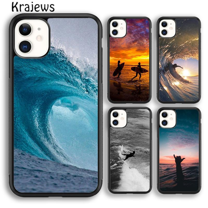 Krajews Surfing Sea Beach Surfboard Wave Phone Case For iPhone 17 Air 15 16 14 plus 11 12 13 pro max coque Shell Fundas