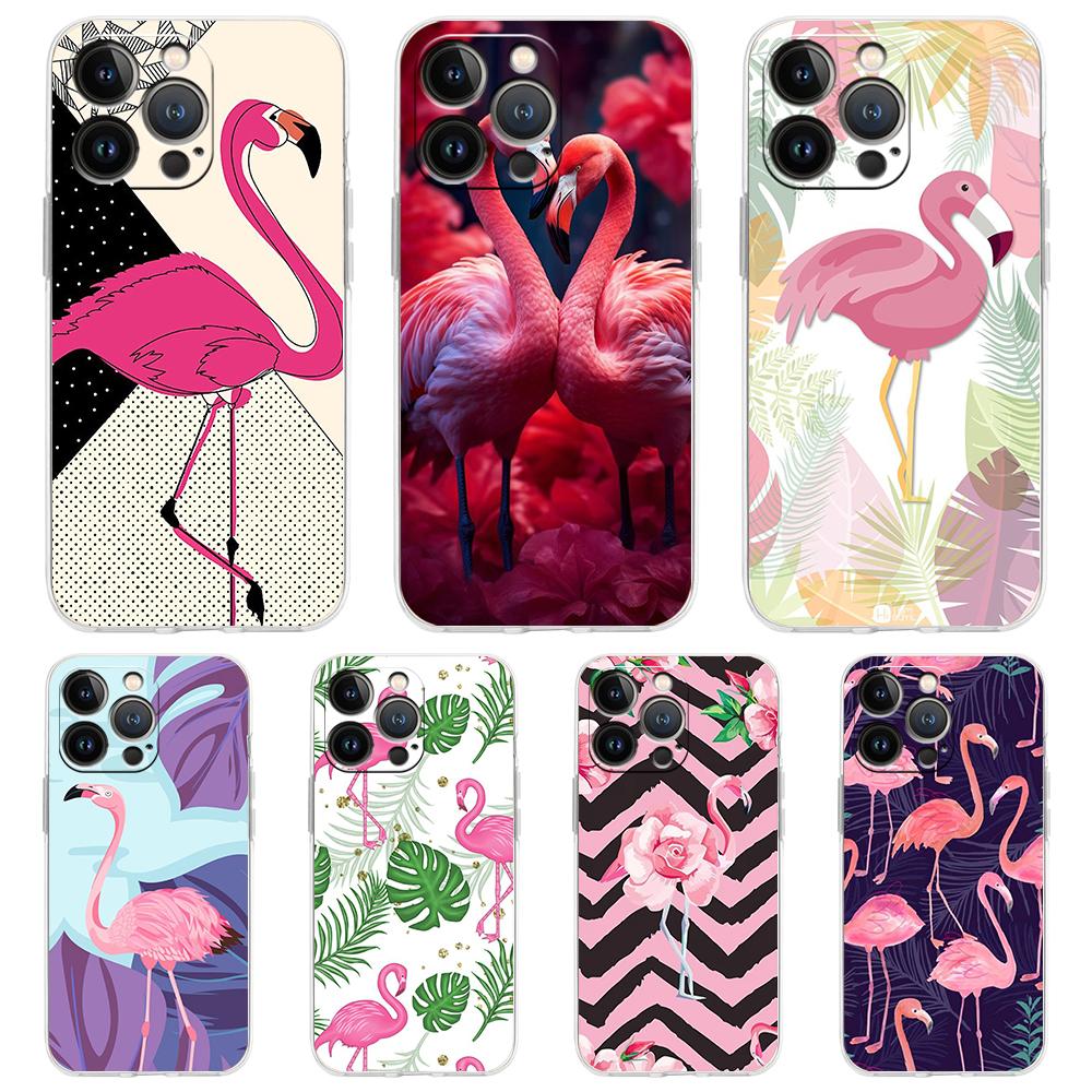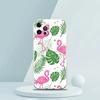 For iPhone 15 16 14 13 12 mini 11 Pro Max XS X XR SE 7 8 Plus Silicone Clear Cover lovely Pink Flamingos leaf Phone Case