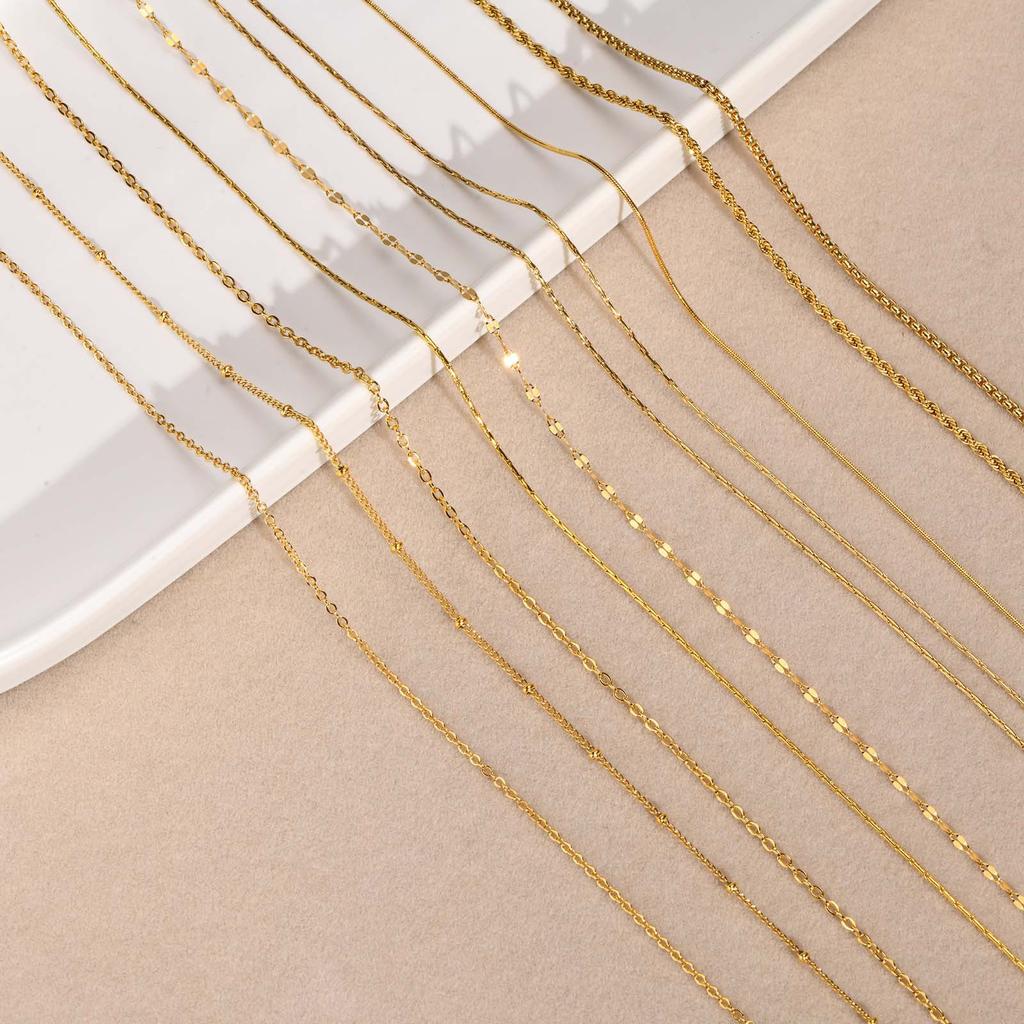 Color: gold twist chain 2.2mm * 405cm [NC-1203G], gold melon seed chain 2mm * 455cm [NC-1237G], steel melon seed chain 2mm * 455cm [NC-1237S], gold S-shaped chain 1.5mm * 455cm [NC-1238G], gold lip chain 2mm * 405cm [NC-793G-45], gold pearl chain 2mm * 51cm, gold 1mm * 41cm, gold flat cross chain 1.5mm * 45cm, gold, flat cross 2mm * 51