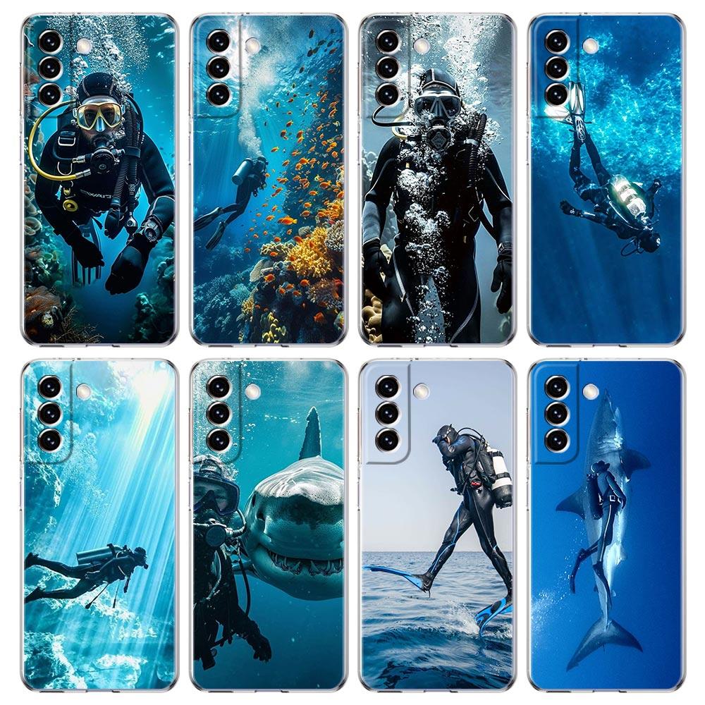 Phone Case For Samsung Galaxy S25 S24 S23 FE S22 Ultra S20 S21 5G S10 Plus S10E Soft Clear Cover Diver Diving