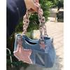 Fashion Shoulder Underarm Harajuku Star Tote Denim Bag Chain Ladies Bags Zip Purses Handbags Women Luxury Square Bag