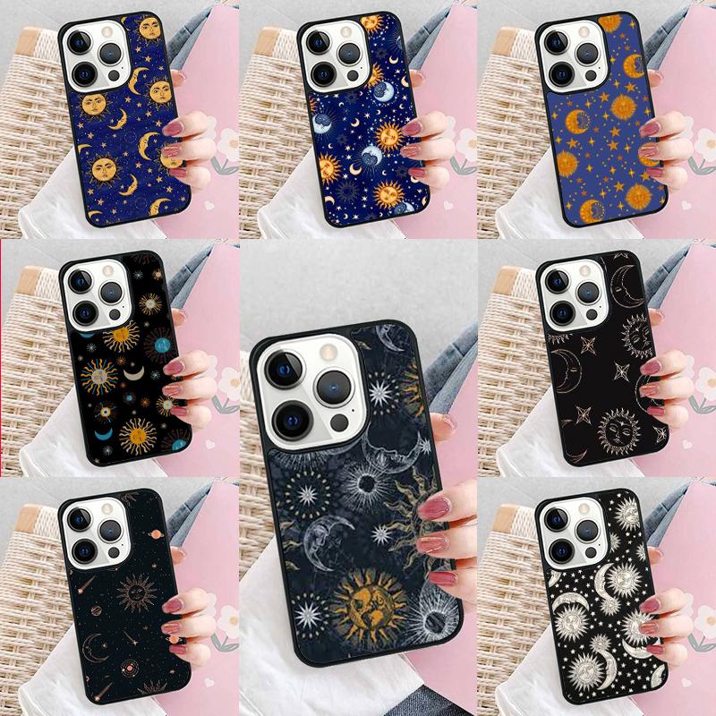 Vintage Maan en Zon Sterren Telefoonhoesje Voor iPhone 17 Air 15 16e 14 13 Pro Max Coque 12 11 Pro Max PLUS hoes