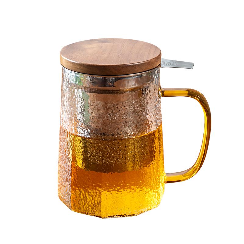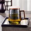 Heat-Resistant Glass Teacup with Stainless Steel Infuser & Wooden Lid
