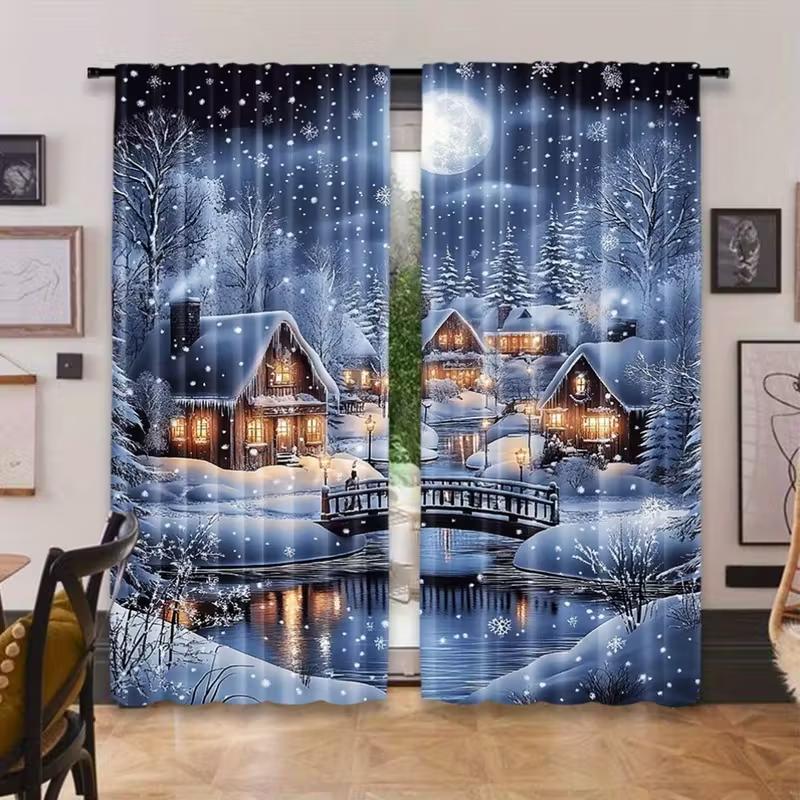 Suitable for indoor spaces such as living rooms, bedrooms, children's rooms, dining rooms, and entrances, it can also be used as an atmosphere item for Christmas themed parties, homestay decoration, and shop decoration. It can be hung separately as the main curtain or paired with a white gauze curtain to enhance the layering and make the Christmas decoration more complete. Some styles can be folded for storage, taking up no space after holidays, and can still be reused next year.
