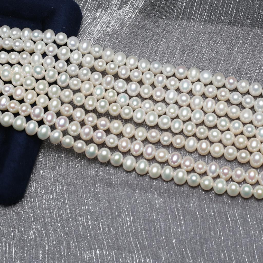 1String, White Natural Freshwater Pearls, Handmade Near Round Pearl Beads for Jewelry Making DIY Necklaces, Bracelets Crafts, Beads 7-8mm, Length 36cm