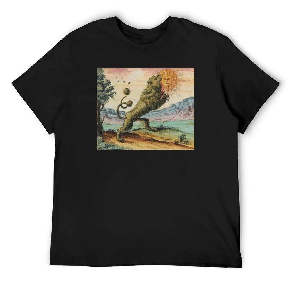 The Lion Eating The Sun Antique Alchemy Illustration T-Shirt graphic shirts new edition black t-shirts for men