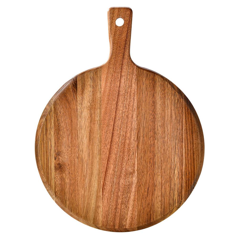 Acacia Wood Round Pizza Serving and Cutting Board with Carry Handle Wooden Tray for Kitchen Pizza and Cheese Platters