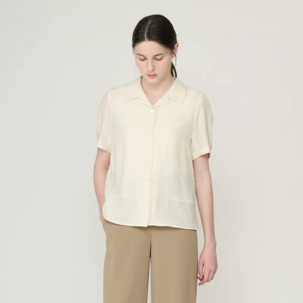 The Double Collar Volume Sleeve Blouse B6M5B494 offers a soft and graceful impression, completing summer styles. It features a double collar design and volume sleeves, pairs well with various bottoms, and has a refreshing color as a highlight.