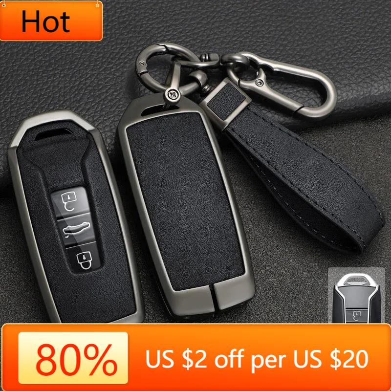 Interior Mouldings Zinc Alloy+PU Leather Car Key Case Cover For VW Volkswagen Touareg 2018 2019 2020 2021 2022 2023 3 Buttons Re
