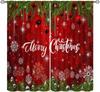 Christmas Curtains Red White Snowflakes Xmas Merry New Year Winter Holiday Party Decor Window Drapery Treatments Curtain Made Of Polyester