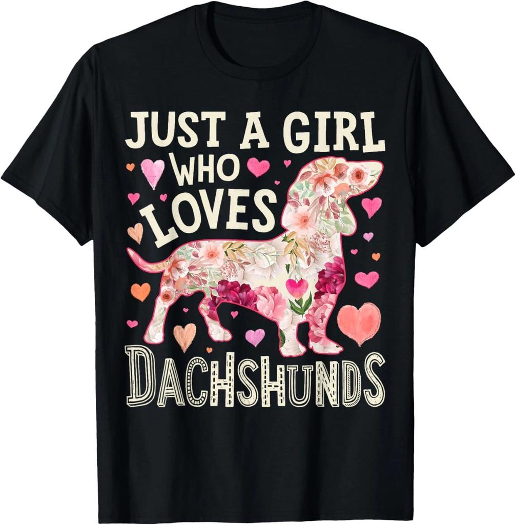 Dachshund Just A Girl Who Loves Dachshunds Dog Flower Floral Gift Unisex T-Shirt