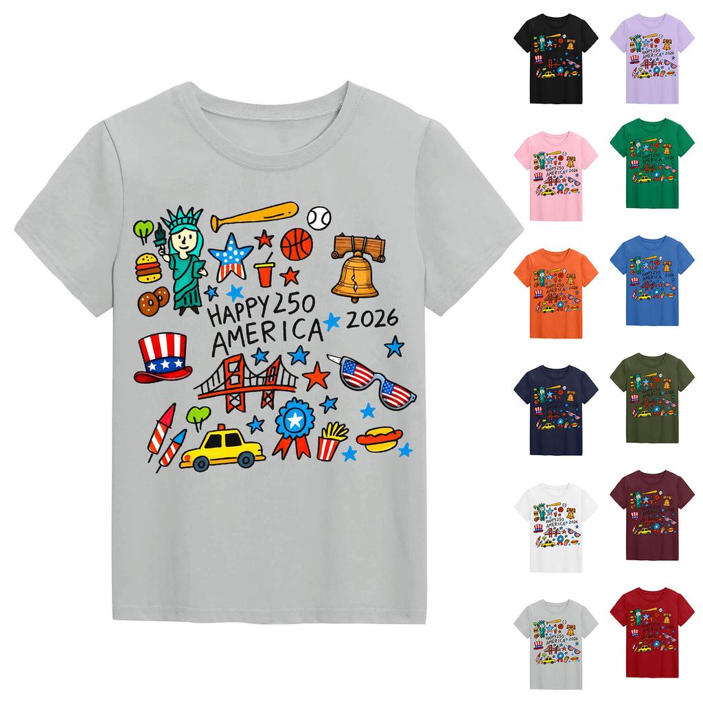 Modieuze tops met ronde hals, korte mouwen en print voor kinderen, zomertops