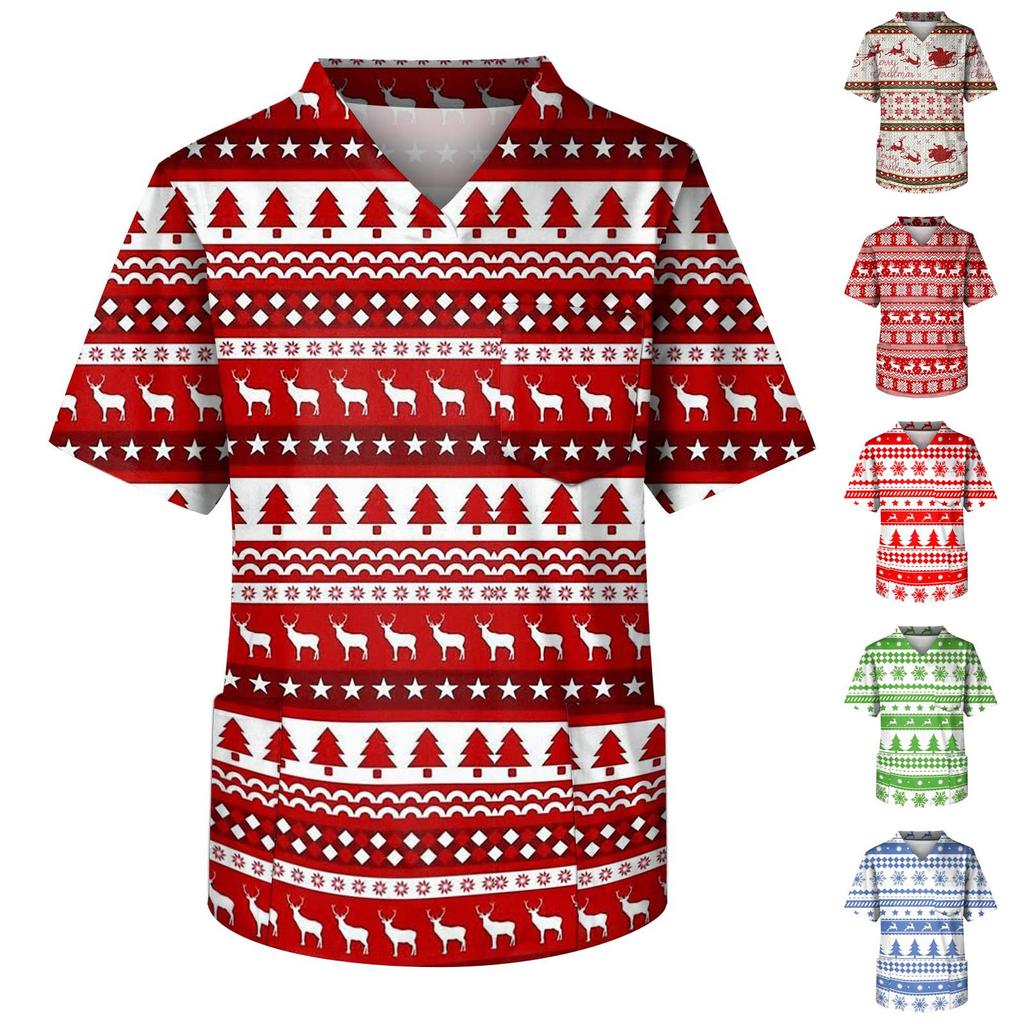 Heren Korte Mouw V-Hals Kerstprint Borstzak Zorgtop