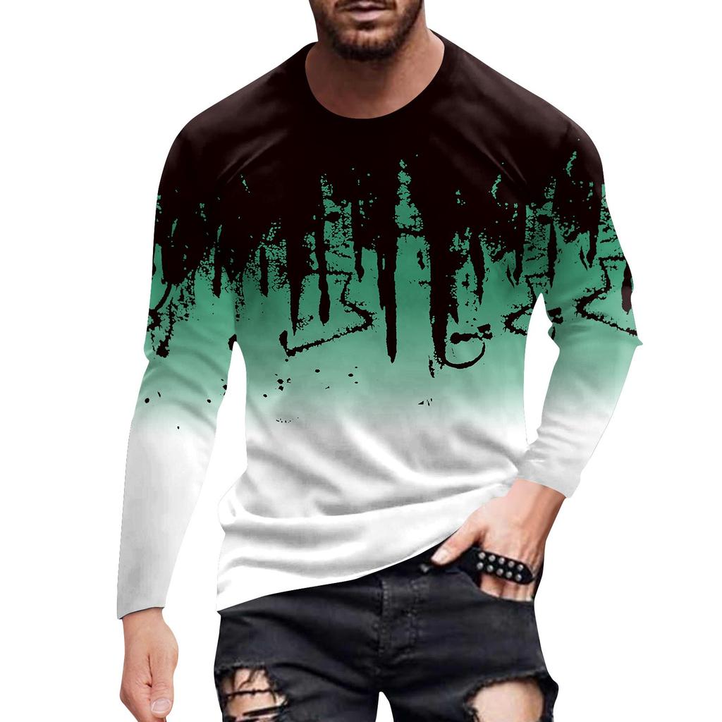 Men's Spring Ink Print Long Sleeve T-Shirt Men's Loose Casual Fashion Long Sleeve T-Shirt