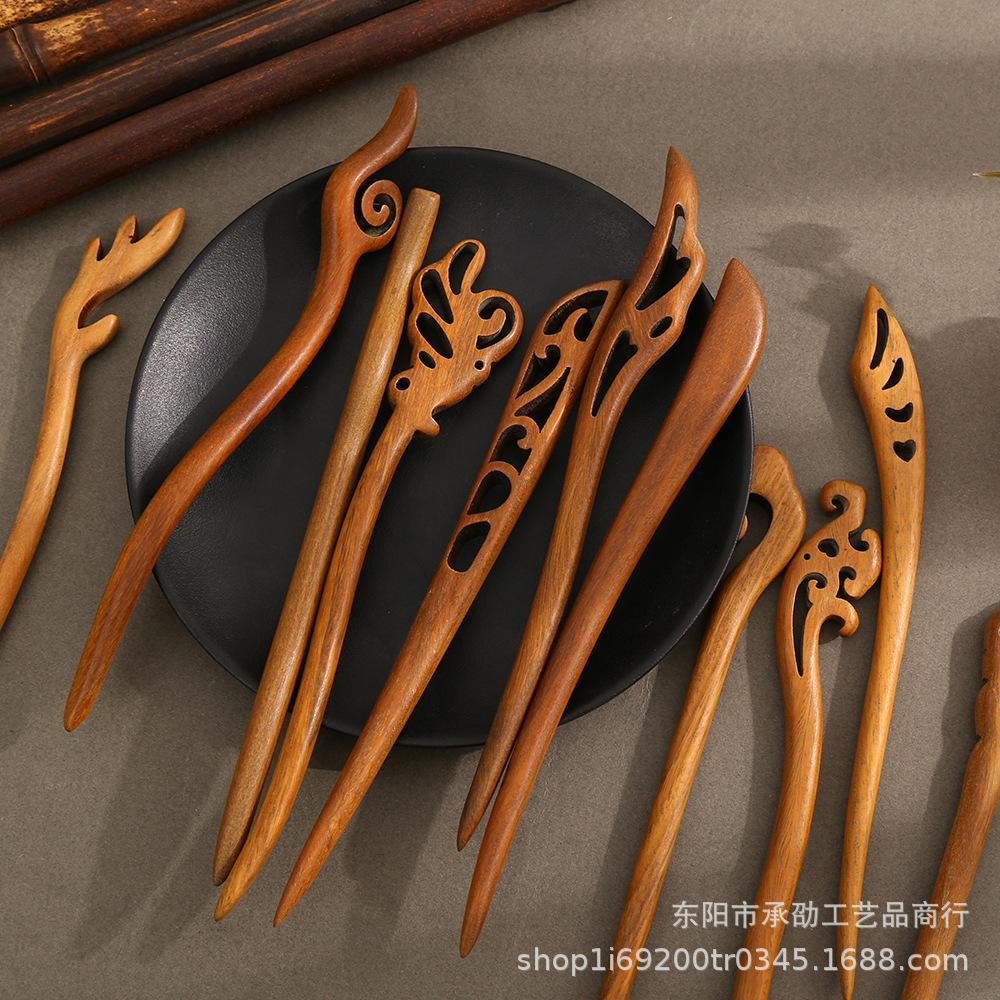 Ancient Green Sandalwood Retro Hairpin for Women - Wood Craft Updo Accessory
