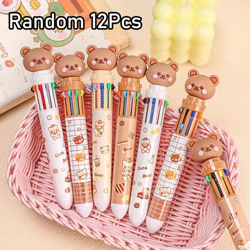 2Pcs 10 Colors Ballpoint Pen Cartoon Bear 0.7mm Colorful Ink Neutral Pen School Office Supplies Stationery Ballpoint Pen