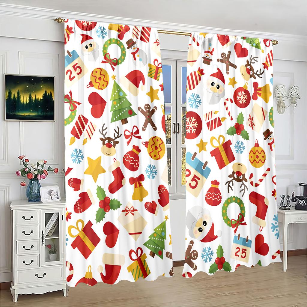 2pcs- Cute mini Christmas polyester material curtains, 42*84 roller bag curtains, bedroom, family room, home room, party decoration