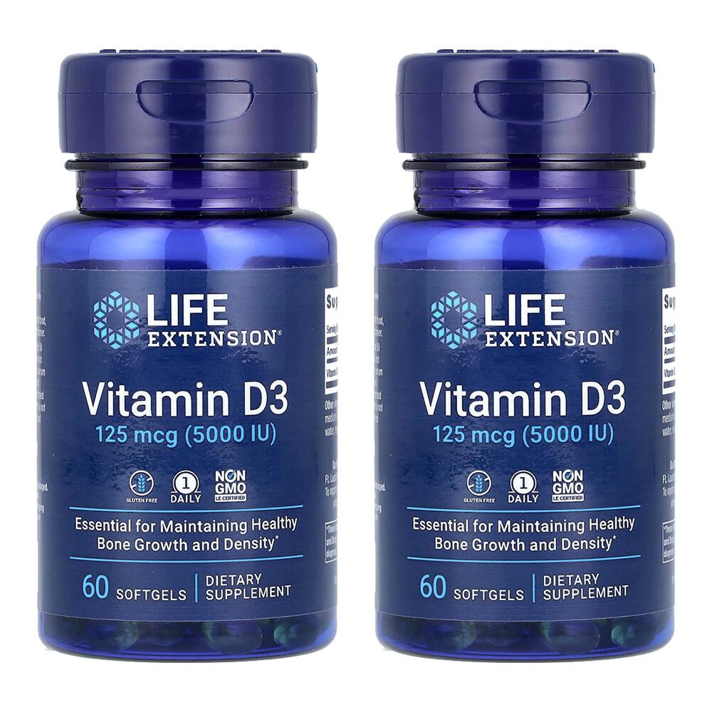 Life Extension Vitamin D3 125mcg (5000IU) Softgels, 60 Counts (2 Pack)