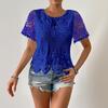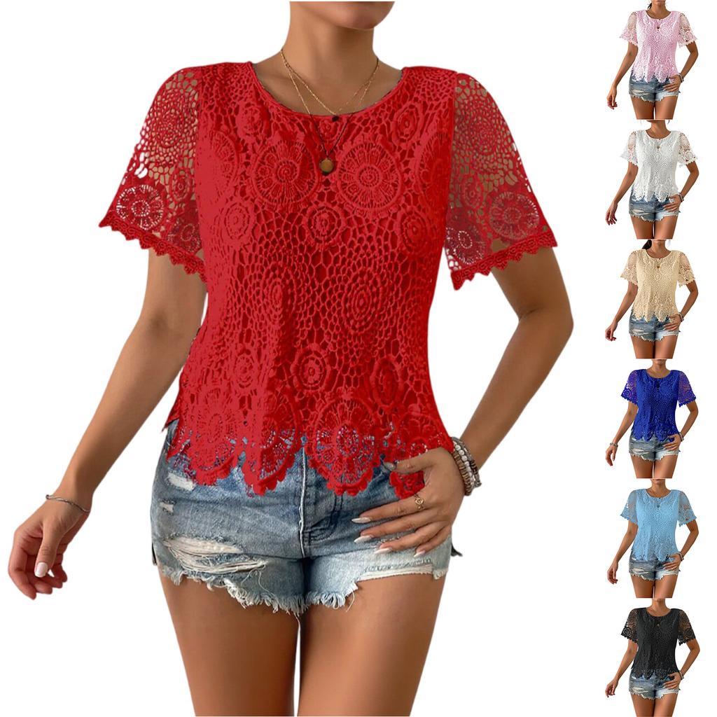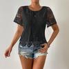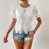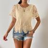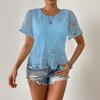 Casual dames T-shirt met ronde hals, kanten details en korte mouwen.