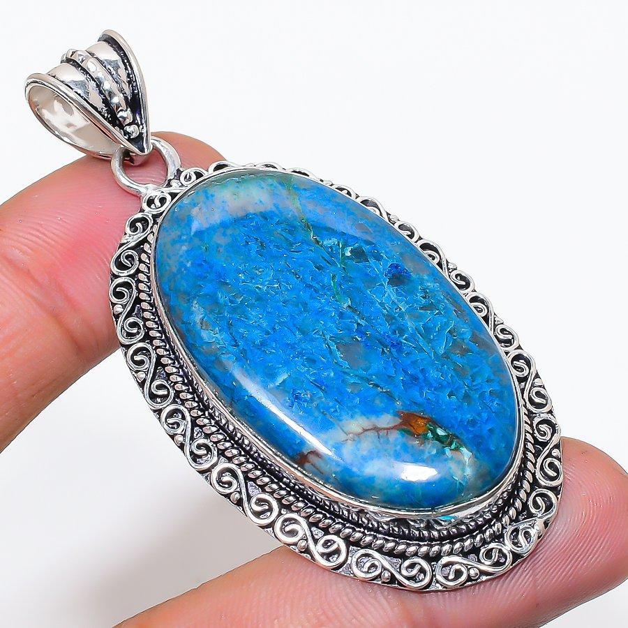 Natural Lapis Lazuli Gemstone 925 Sterling Silver Jewelry Pendant 2.60" AP-14170