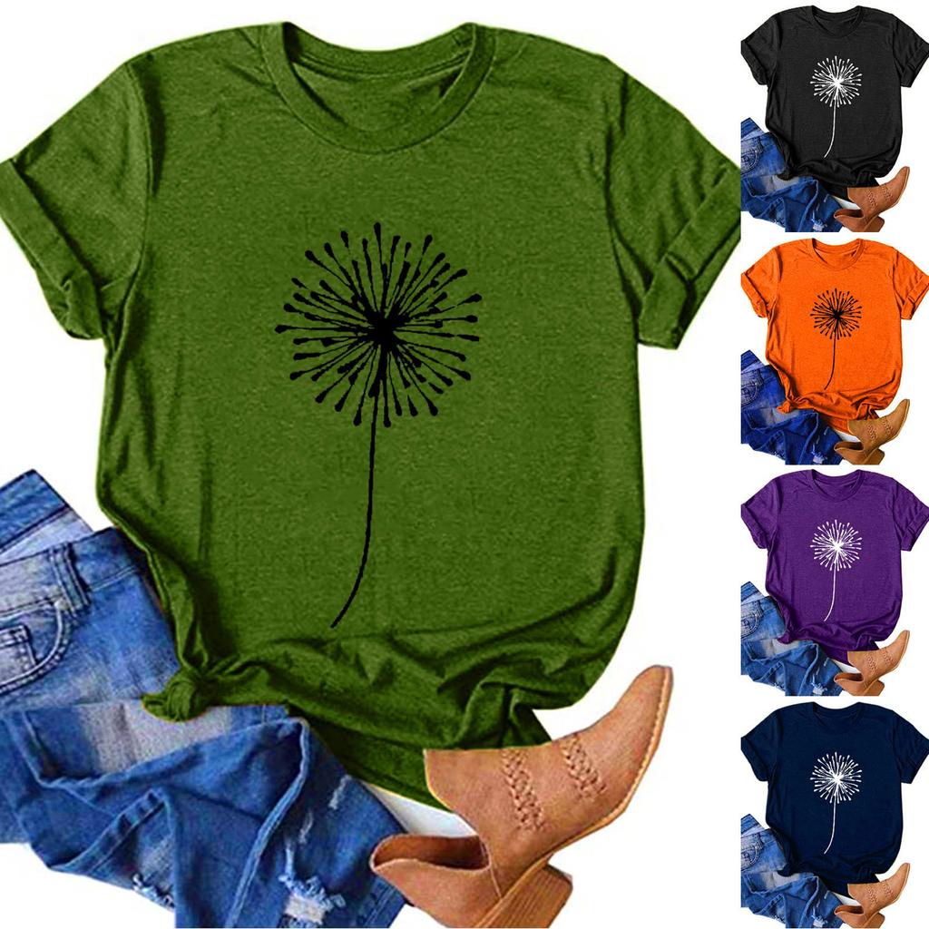 Women Casual Printing Short Sleeves Loose T-Shirt Blouse Tops