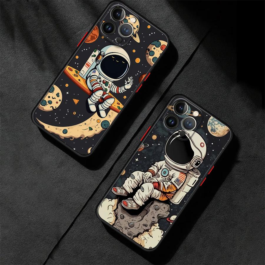 Cartoon Astronaut Phone Case for iPhone 16 11Pro 13 Mini 7 8 Plus XS Max SE XR 14 Pro 15Pro 12 Matte Cover