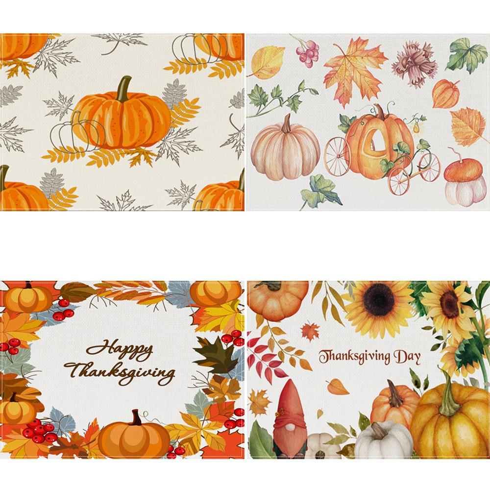Thanksgiving Autumn Harvest Pumpkin Placemats Seasonal Autumn Table Mats for Outdoor Home Party Dining Decoration
