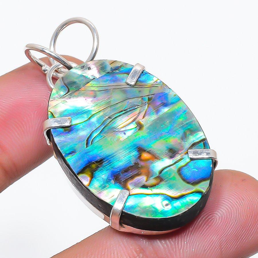 Natural Abalone Shell Gemstone 925 Sterling Silver Jewelry Pendant 1.97" AP-14182