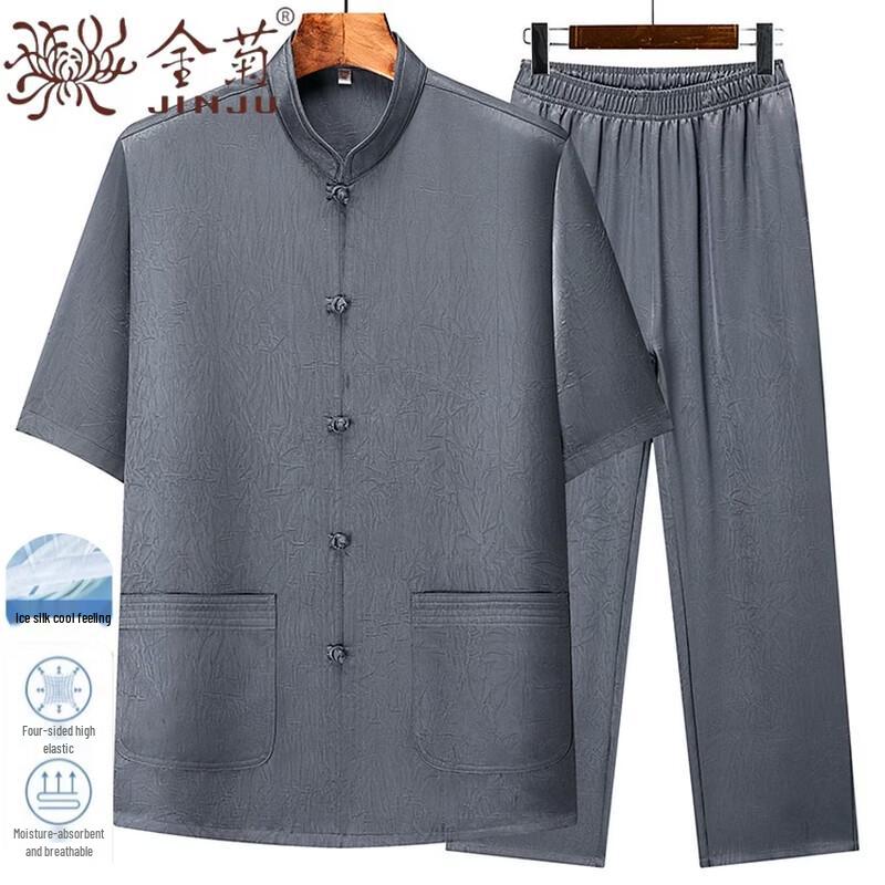 Men's Summer Ice Silk Chinese Tang Suit Set