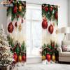 Color Christmas Ball Printed Perforated Curtains Insulation Multi Size Living Room Bedroom Holiday Decoration Set Of 2 Made Polyester Decor
