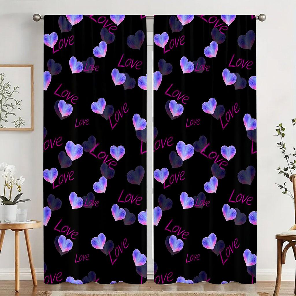 Set Of 2 Modern Neon Love Heart Pattern Curtains Perfect Valentine Day Window Decor Curtain With Rod Pocket Polyester