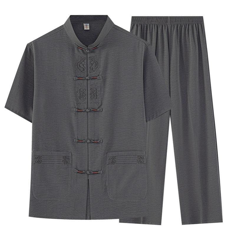 Chinese Style Chinese Style Cotton and Linen Men's Tang Suit Jacket Short-sleeved Men's Summer Shirt Tai Chi Suit
