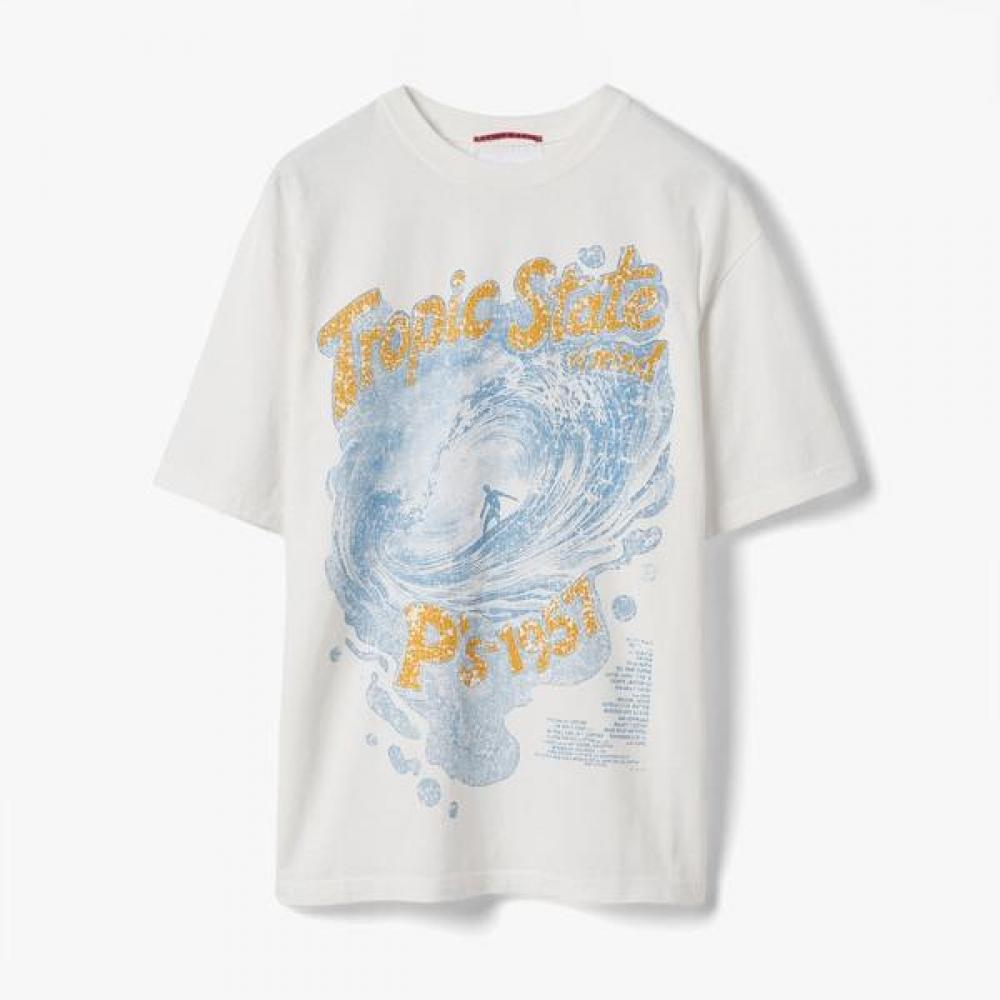 The PRESIDENTS T-SHIRT TROPIC STATE features a round neck design suitable for summer, with an attractive off-white color. It offers comfortable wear and maintains a basic style, harmonizing with various bottoms.