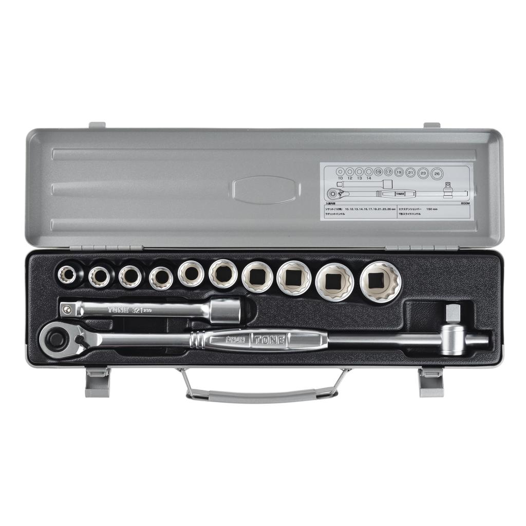 TONE Socket Wrench Set 13 Pieces 800M, 12.7mm (1/2") Drive, Silver,