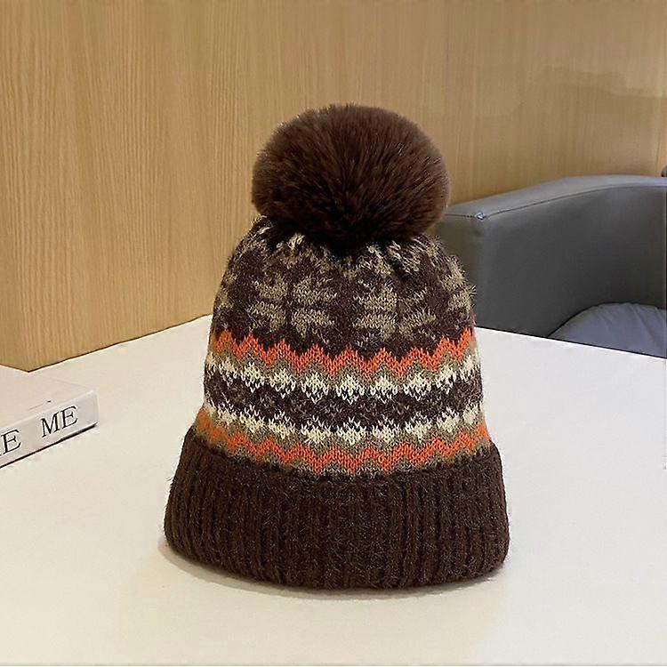 Winter Hats for Women - Bobble Hat Thermal Fleece Beanie Hat Double Layer Fleece Lined Pom Pom Hats Colorful Cable Knitted Hat coffee