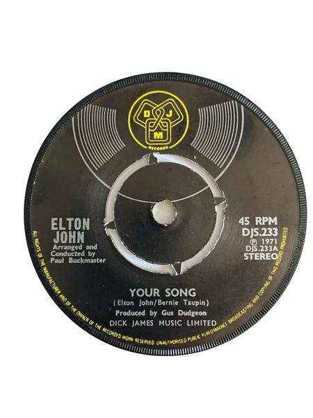 7inch Record ELTON JOHN Your Song DJS233 DJM Records 1971 UK Rock Used