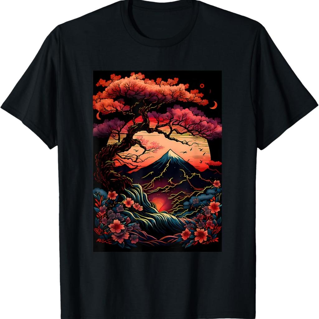 Japan Nature Cherry Blossom Tori Fuji Spiritual T-Shirt(3)