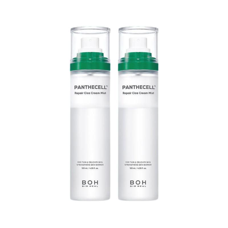 The BIOHEAL BOH Panthecell Repair Cica Cream Mist is a specialized dermatological treatment engineered to provide immediate relief and long-lasting barrier repair for thin, sensitized, and damaged skin. Formulated with the proprietary Panthecell™ Complex, this unique cream-in-mist formula combines the intensive nourishing power of a repair cream with the rapid absorption of a fine mist. Infused with high-purity Panthenol (Vitamin B5) and Cica (Centella Asiatica), it works to soothe redness, strengthen the skin's natural defense system, and eliminate "inner-dryness" upon contact. Its ultra-fine spray technology ensures an even, cloud-like distribution that hydrates the skin without feeling heavy or sticky. This special value set includes two 120ml bottles, making it the perfect daily companion for maintaining a resilient, healthy, and hydrated "Glass Skin" complexion throughout the day.