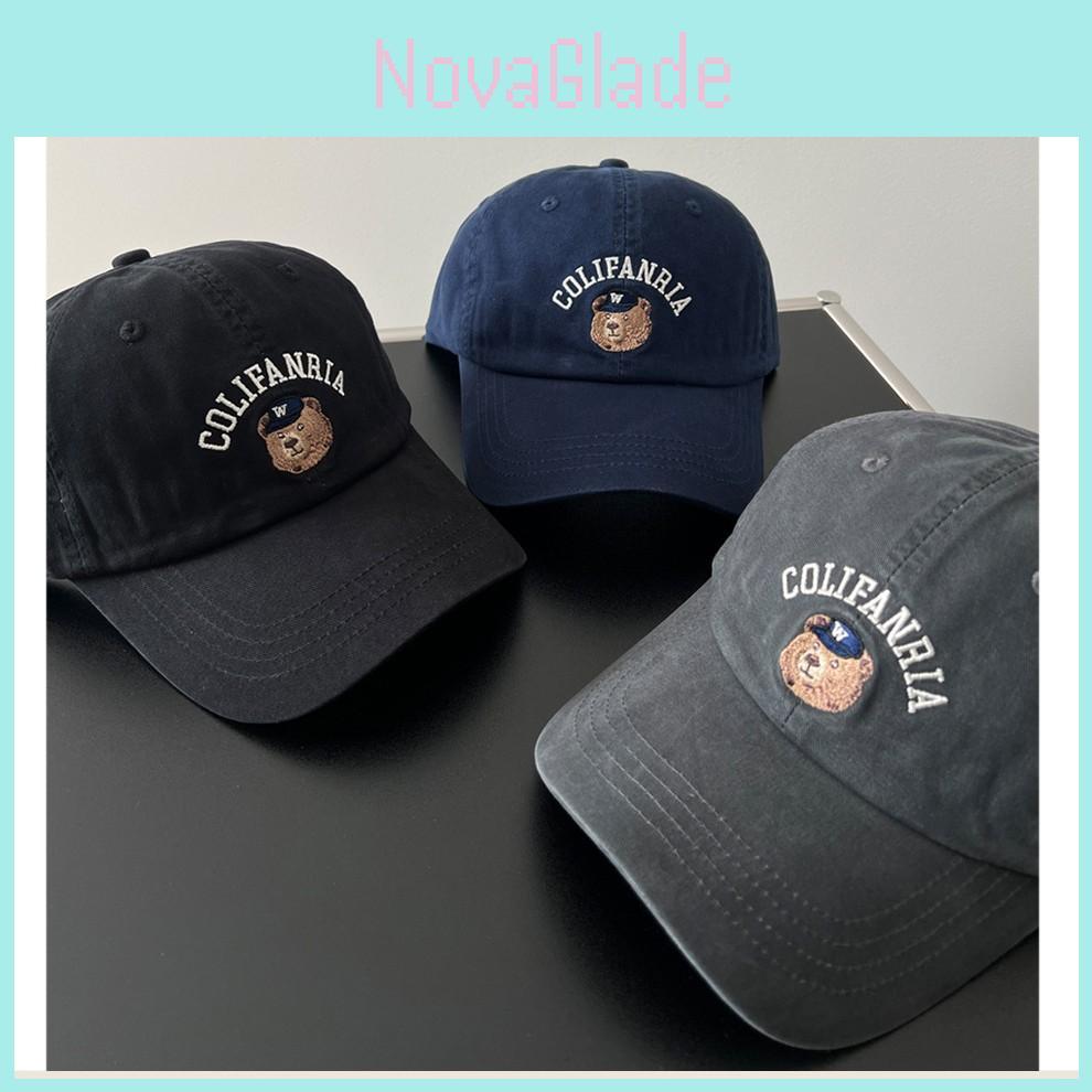 This baseball cap features cute bear embroidery on a breathable cotton fabric,Designed with a wide brim and rounded crown, it offers effective sun protection and moisture resistance. Ideal for casual outings or outdoor activities, wipe clean with a damp cloth to maintain its appearance.