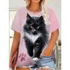 Dames T-shirt 3D Patroon Gedrukt Casual Korte Mouw Ronde Hals Top Modieuze Straat Dameskleding
